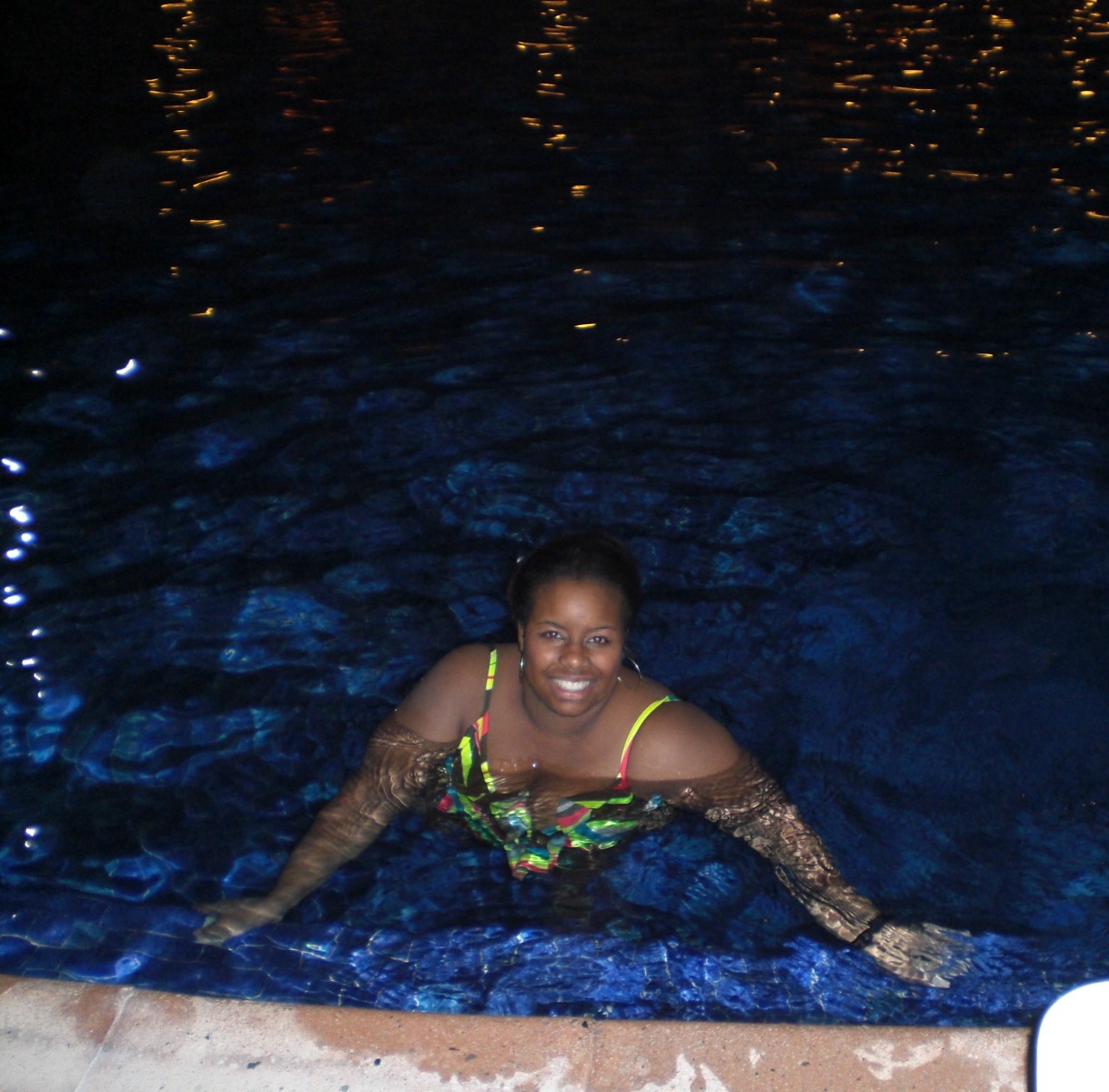 and we stayed until it was dark.. and the pool lights came on, lol.